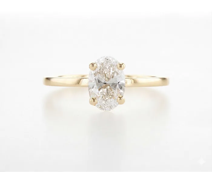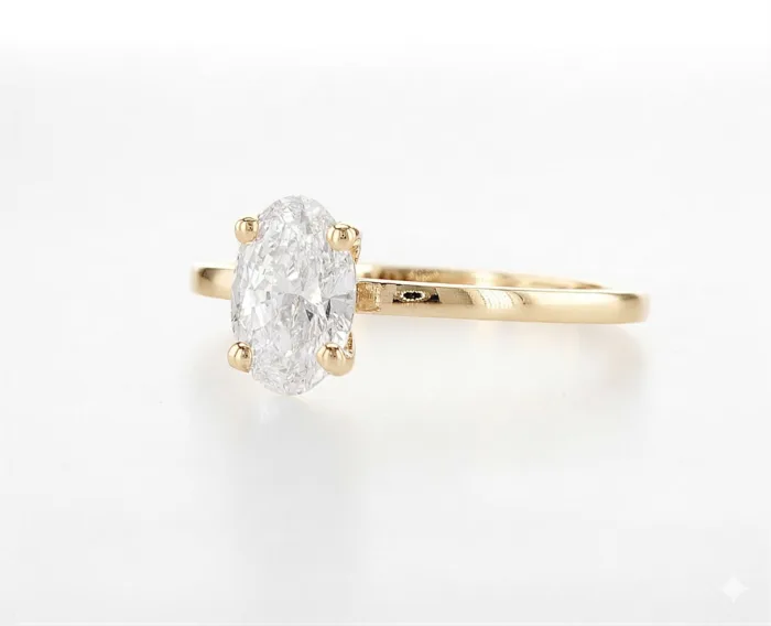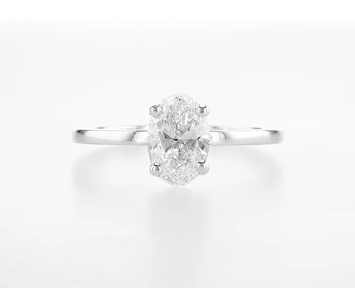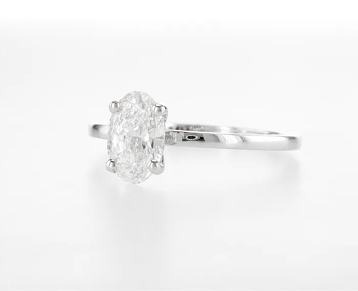 טבעת זהב לבן 14k יהלום מעבדה חיתוך אובל 1.69 קראט