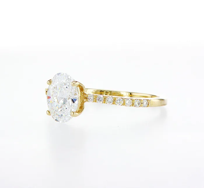 טבעת זהב צהוב 14k בחיתוך אובל אבן מרכזית 1.50 קראט , צדדיות 0.22 קראט