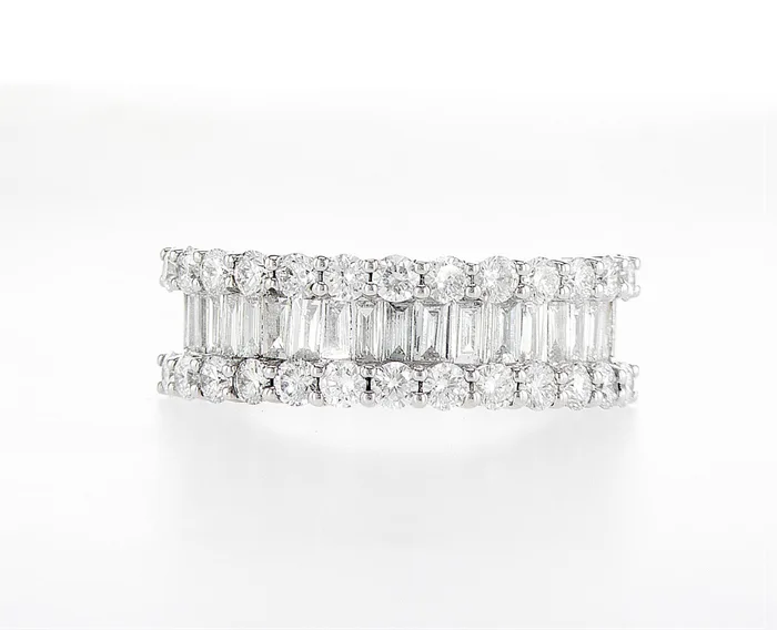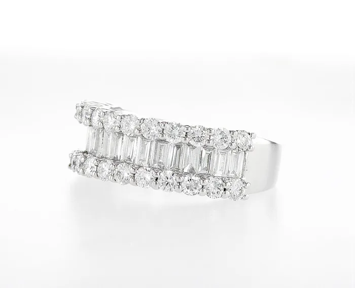 טבעת זהב לבן 14k עם חיתוך יהלומי באגטים 1.13 קראט בשילוב אבנים עגולות 0.79 קראט