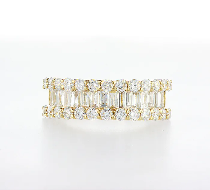 טבעת יהלומים חיתוך באגטים 1.13 בשילוב אבנים עגולות 0.79 קארט