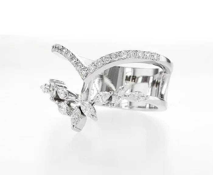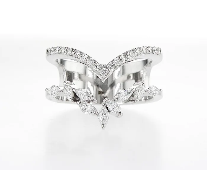 טבעת יהלומים מעוצבת משולבת יהלומי מרקיזה 0.41 קראט ועגולות 0.21 קראט