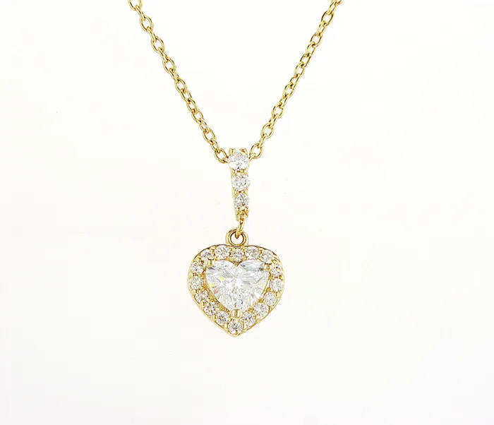 שרשרת זהב צהוב 14k תליון לב 14k משובצת יהלומי מעבדה