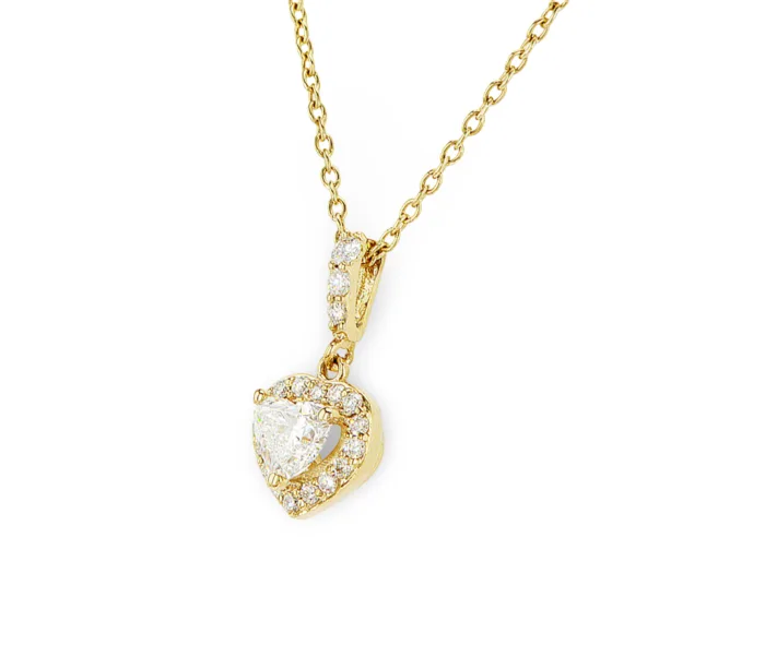 שרשרת לב משובצת יהלום מרכזי 0.64 קראט יהלומים צדדים 0.18 קראט
