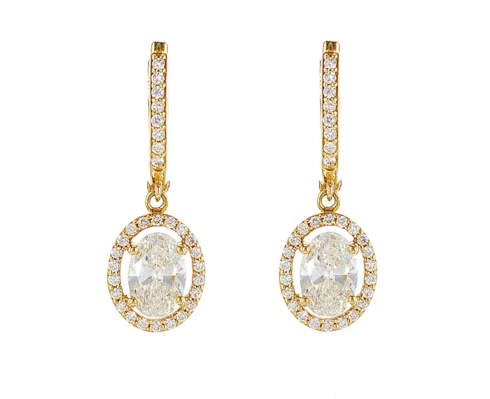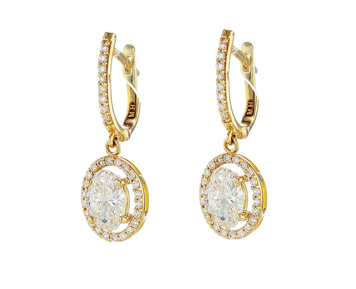 עגילי יהלום אובל בשילוב יהלומים מסביב אובל 2.11 קראט יהלומים מסביב 0.45 קראט