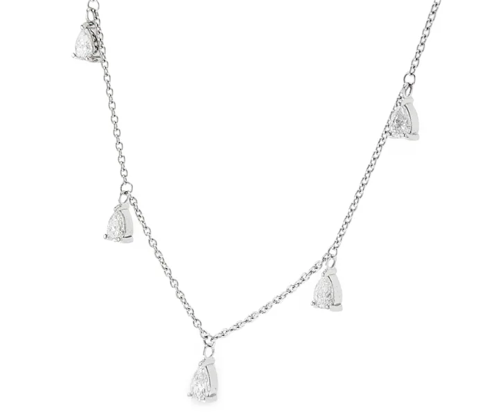 שרשרת זהב לבן 14k מעוצבת יהלומי מעבדה טיפות 1.30 קראט
