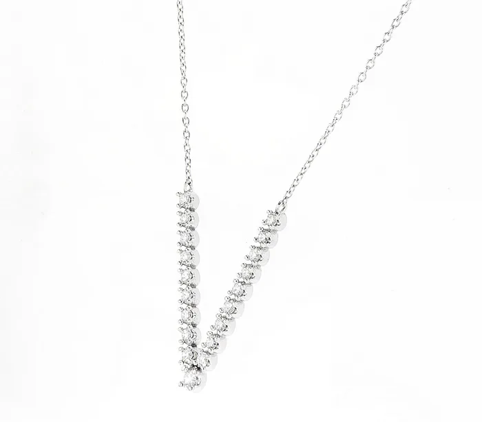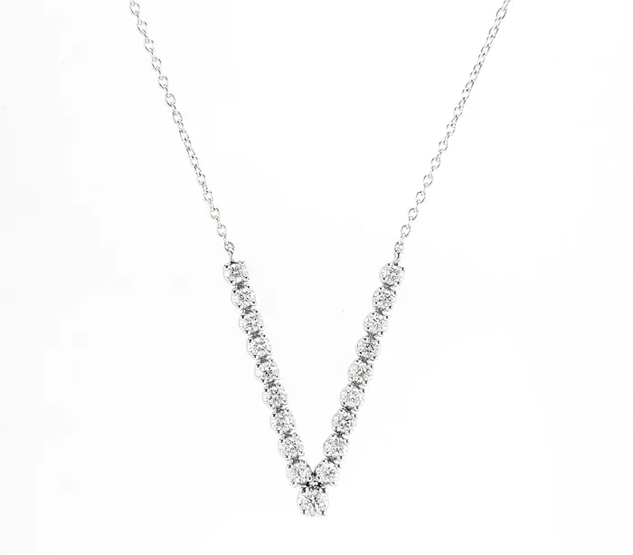 שרשרת זהב לבן 14k בצורת v משובצת יהלומי מעבדה 0.56 קראט