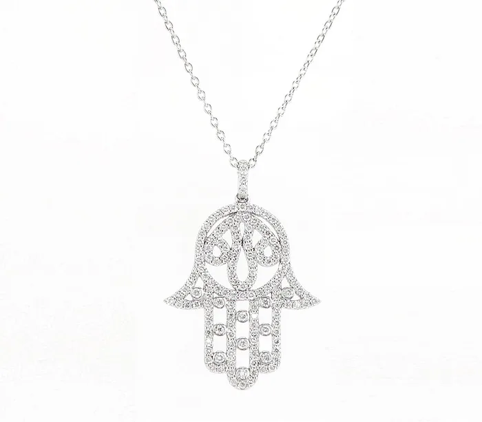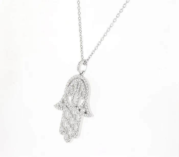 שרשרת זהב לבן 14k חמסה משובצת יהלומי מעבדה 0.69 קראט