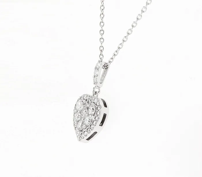 שרשרת זהב לבן 14k בצורת לב יהלומי מעבדה אבנים מרכזיות 0.47 קראט אבנים קטנות 0.17 קראט