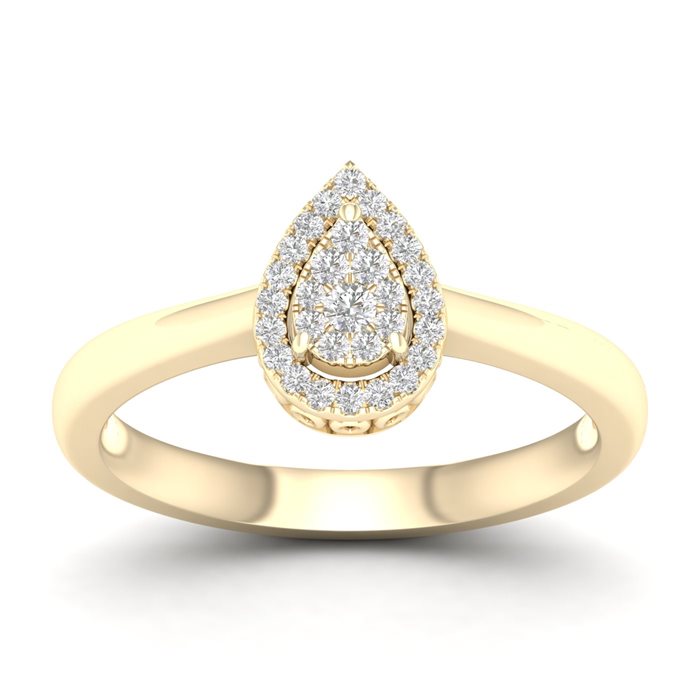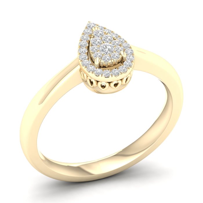 טבעת זהב 14K בצורת טיפה משובצת יהלומים במשקל 0.15 קראט