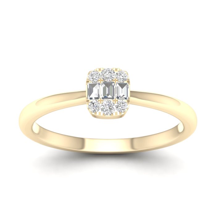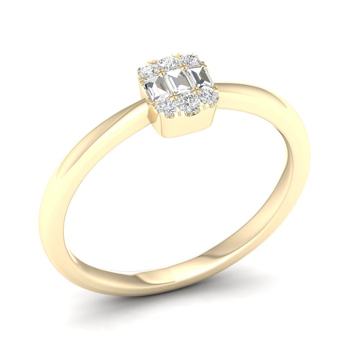טבעת זהב 14K משובצת יהלומים ויהלומי בגטים במשקל 0.10 קראט