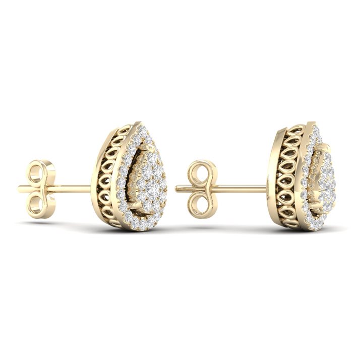 עגילי זהב 14K בצורת טיפה משובצים יהלומים במשקל 0.25 קראט