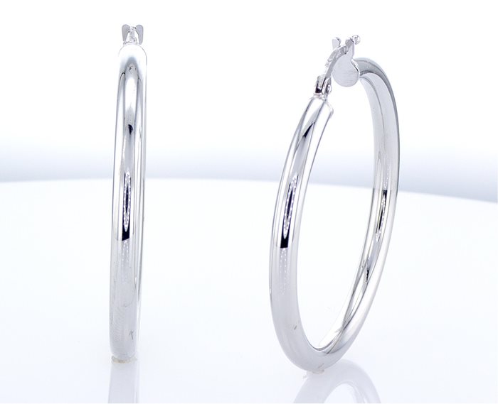 עגילי זהב לבן חישוק עבים קוטר 3.5 ס''מ