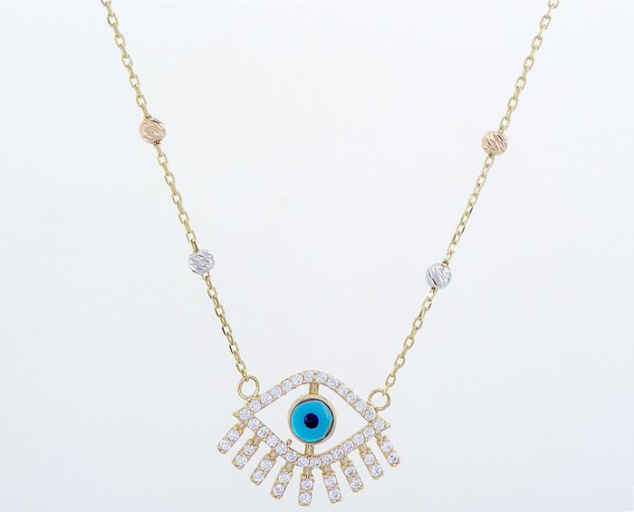 שרשרת זהב ''עין וריסים'' משובצת זרקונים וכדורי זהב
