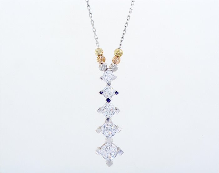 שרשרת זהב לבן משובצת זרקונים וכודרי זהב